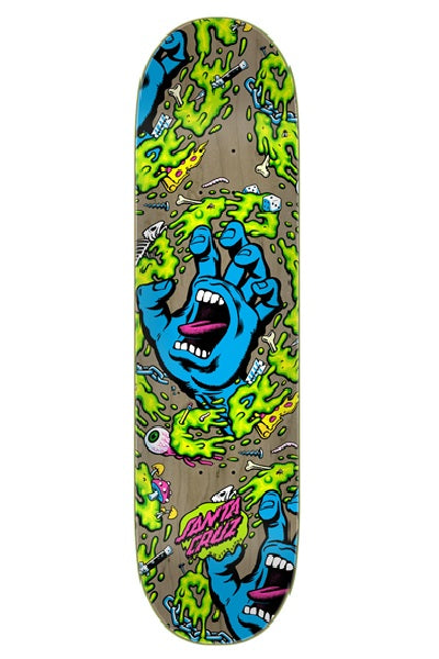 Santa Cruz Skateboards Slime Scream 7 Ply Birch deck featuring spot gloss and neon Screaming Hand Slime graphics with veneer reveal.
