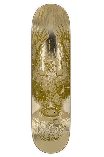 The Santa Cruz Skateboards McCoy Cosmic Eagle VX Twin Pro deck features Maurio's custom, symmetrical twin shape, VX deck construction, 14.22" wheelbase and metallic gold McCoy Cosmic Eagle graphics.