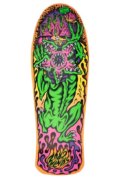 The Santa Cruz Salba Demogorgon 10.3in x 31.1in deck features multicolor glow in the dark graphics on fully dipped orange deck in Steve Alba's OG Tiger shape. This deck also features adjustable 14.5-15" wheelbase.